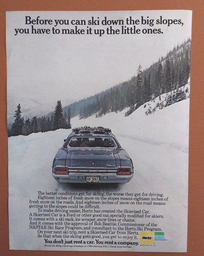 Vintage 1970 Hertz Rental Car Print Ad Art Poster Ford Galaxie 500 Snow Ski Car Ebay